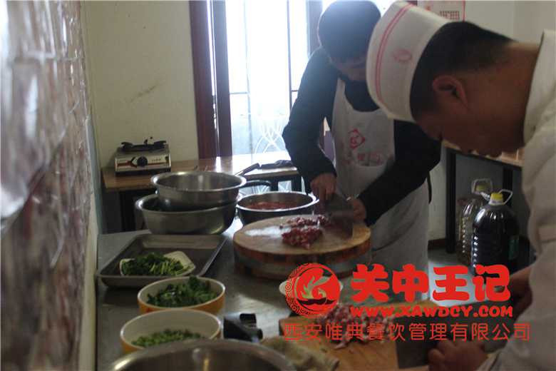biangbiang面的肉臊子準(zhǔn)備中,師傅和學(xué)員一起,有錯(cuò)誤的地方會立即指出的,瞧瞧我們這位同學(xué),切的多認(rèn)真哈。小編我給你100分。