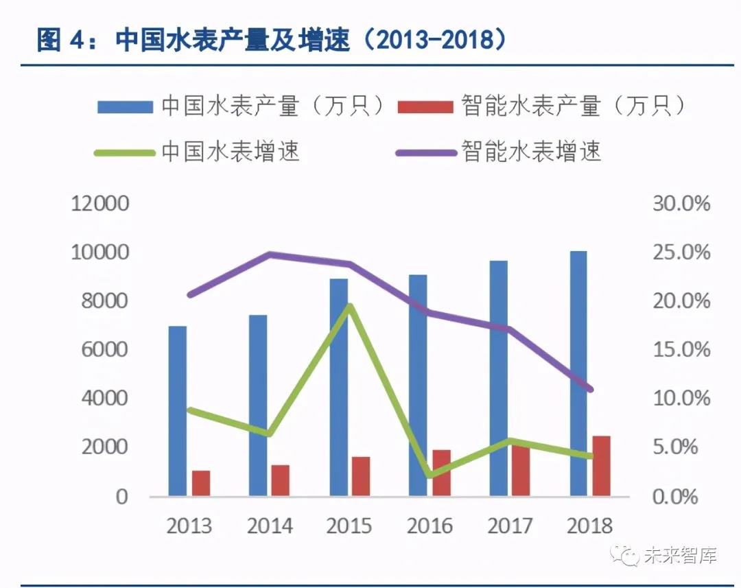? 需求放量:多年來,供水行業(yè)存在諸多管理痛點,一方面,人工抄表隨著人力成本上升,面臨越來越高的 運營成本壓力,同時人工抄表也存在結(jié)算周期長、易出差錯的缺陷。另一方面,我國的供水企業(yè)漏損率居 高不下,根據(jù)《城市供水統(tǒng)計年鑒》,2015 年 603 個建制市供水企業(yè)平均產(chǎn)銷差率為 20.7%。2017 年 1 月,《城鎮(zhèn)供水管網(wǎng)分區(qū)計量管理工作指南—供水管網(wǎng)漏損管控體系構(gòu)建(試行)》提出:到 2020 年,全國 城鎮(zhèn)公共供水管網(wǎng)漏損率控制在 10%以內(nèi)。政策的出臺使得漏損治理的需求更加迫切。而使用智能水表一 方面可通過取代人工抄表、提升運營效率,另一方面也是供水企業(yè)開展管網(wǎng)漏損治理的基礎(chǔ)。此外,2017 年 3 月,全球首個 NB-IoT 物聯(lián)網(wǎng)智慧水務(wù)商用項目發(fā)布,1200 余只 NB-IoT 智能水表在深圳市鹽田區(qū)和 福田區(qū)的多個小區(qū)完成部署;成功的示范案例也打消了行業(yè)顧慮,加速了智能水表需求的釋放。